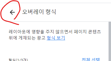 4. 오버레이 형식 옆에 "<-- "를 눌러 뒤로 이동