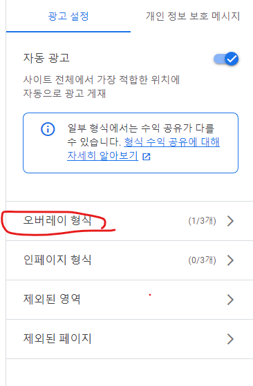 애드센스 전면광고는 페이지를 떠나거나 페이지로 돌아갈 때 나타나는 자동광고 중 하나인데요. 기존에는 단순히 사용 여부를 조정할 수 있었으나, 작동 방식이 바뀌면서 사용자에게 얼마나 자주 표시되는지를 지정할 수 있게 되었습니다. 즉, 방문자가 내 블로그에서 전면 광고를 본 후, 어느 정도의 시간이 지나면 다시 전면 광고가 나오는 지를 조정할 수 있게 되었습니다.