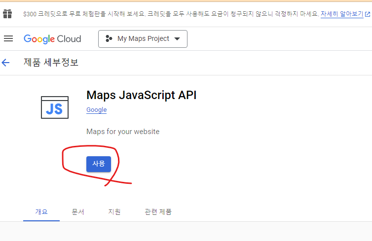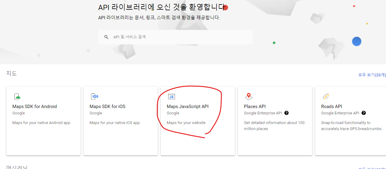 Maps Javascript API를 선택해서 Maps Javascript API 상세페이지로 이동합니다.
